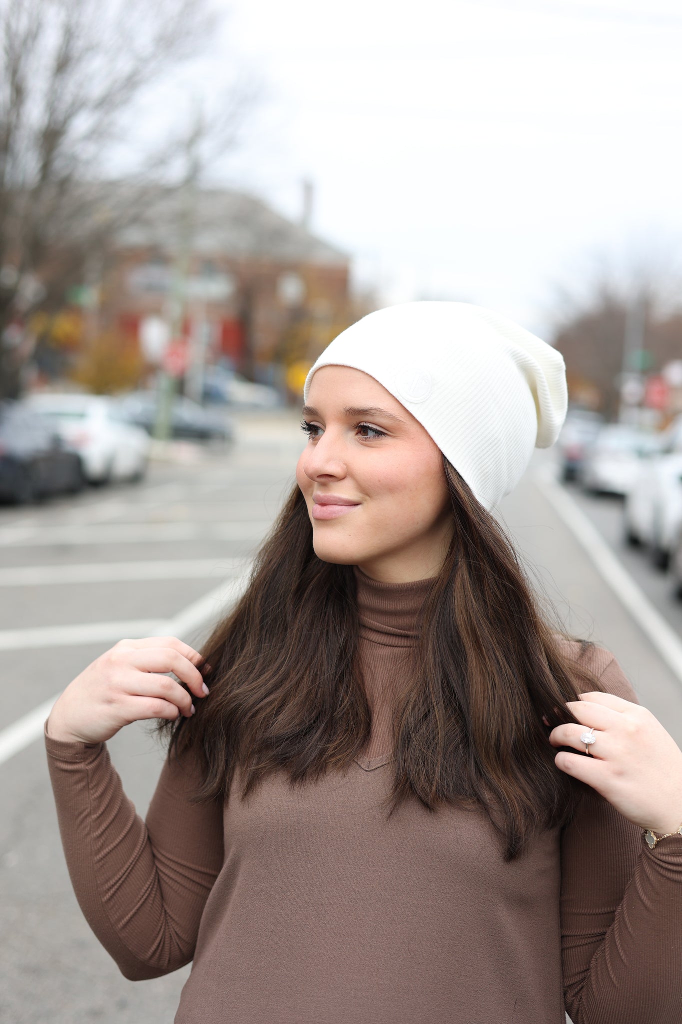 They have a seamless and flat top to ensure a seamless and natural fit when pairing with any beanie, headband, cap, or scarf. Our falls can be worn airdried or styled with heat to create blowouts, crimps, curls, waves, etc... Due to our seamless construction, they can easily be worn up in a pony, bun, braid, and styled just like your hair.